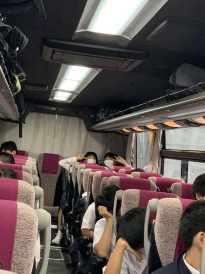 バス車内、1組。新横浜へ向かっています。