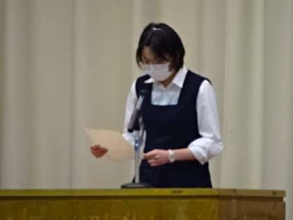 選挙管理委員長が、昨日の生徒会役員選挙の結果を報告しました。全員信任されました。