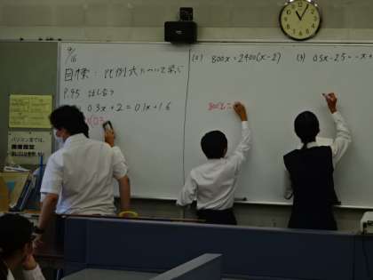 1年1・2組、数学。比例式について学ぶ。