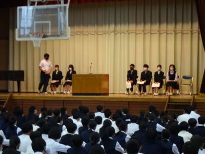 昨日の記事です。新生徒会役員や後期専門委員長のあいさつです。