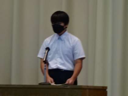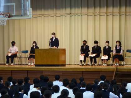 昨日の記事です。新生徒会役員や後期専門委員長のあいさつです。