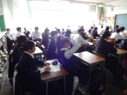 2年生のリハーサルは撮影できませんでした。ごめんなさい。昼休みの反省会です。2年生の発表順は、1番4組「時の旅人」、2番3組「大地の歌」、3番1組「命あるかぎり」、4番2組「心の瞳」。