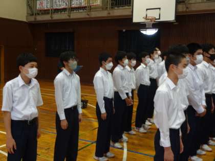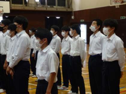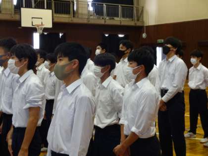 3年生男子が、学年合唱をより良くするために、昼休みに合唱練習を行いました。明日は男女一緒に行うそうです。ガンバレ!