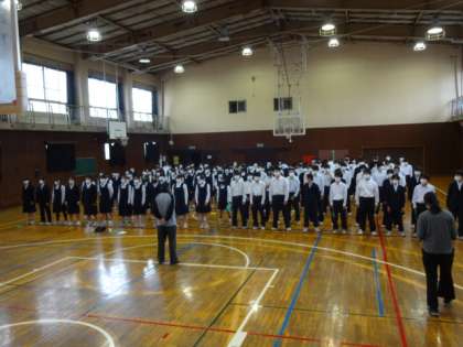 本番を明日に控え、今日は全員で学年合唱「あなたへ〜旅立ちに寄せるメッセージ〜」の昼休み練習です。明日が楽しみです。