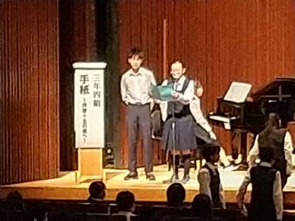 3学年の部。4組。「手紙〜拝啓十五の君へ〜」