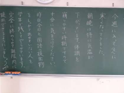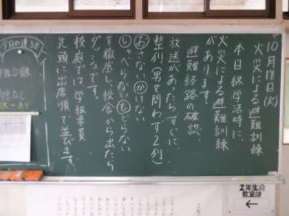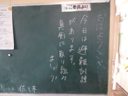 学年掲示板。体調を崩しやすい時期(1年)避難訓練(2、3年)