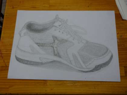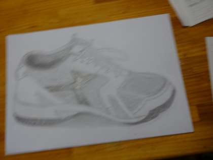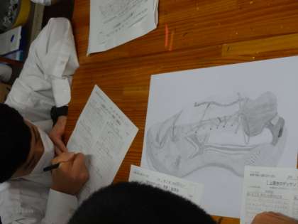 3年1組、美術。「上履きのデッサン」鑑賞会。