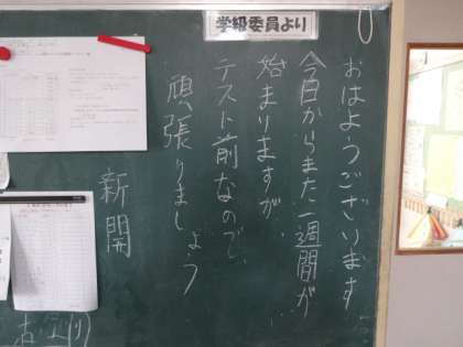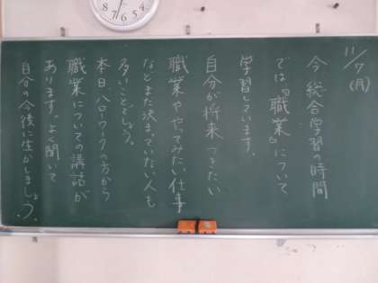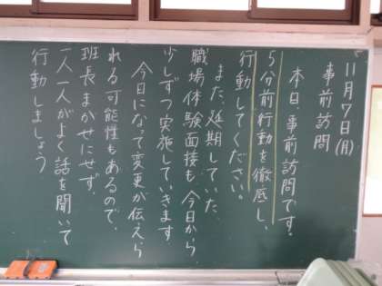 学年掲示板。職業について(1年)事前訪問(2年)テスト前(3年)