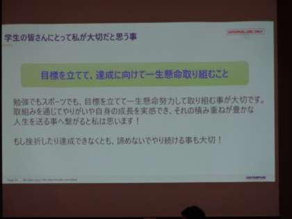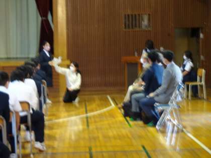 昨日の職業人講話(1年生)の様子です。一中卒業生の歯科医師とJVCケンウッド・オリンパスから講師をお招きし、「仕事」についてお話しいただきました。