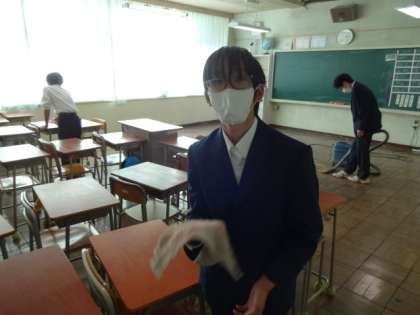 7組、総合的な学習の時間。丁寧な清掃活動です。