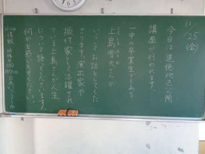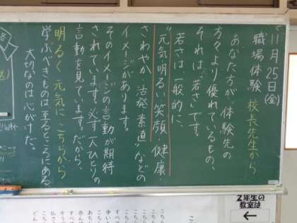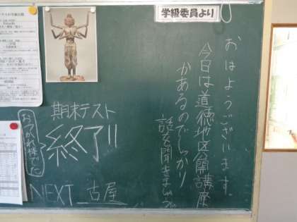 学年掲示板。道徳地区公開講座(1・3年)職場体験(2年)