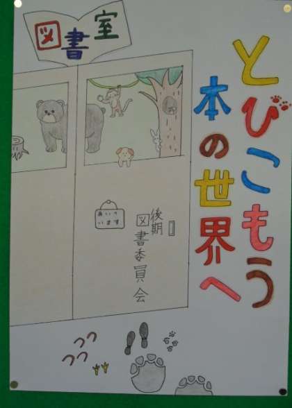 生徒会と後期専門委員会のポスターです。図書、給食、視聴覚委員会。