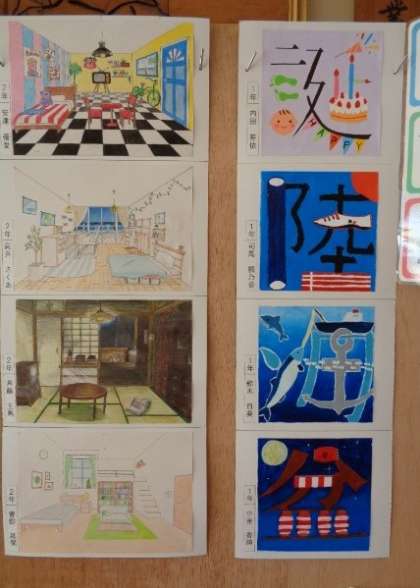 小学校の作品展に一中の作品も展示していただきました。高倉小学校。