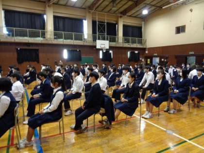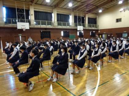 講師は一中卒業生で演出家・振付家の上島雪夫さん。テーマは「人生無駄なことは無い」3年生。