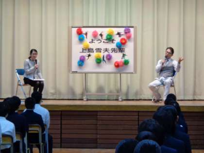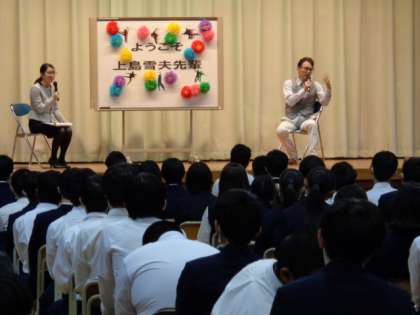 講師は一中卒業生で演出家・振付家の上島雪夫さん。テーマは「人生無駄なことは無い」3年生。