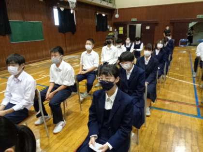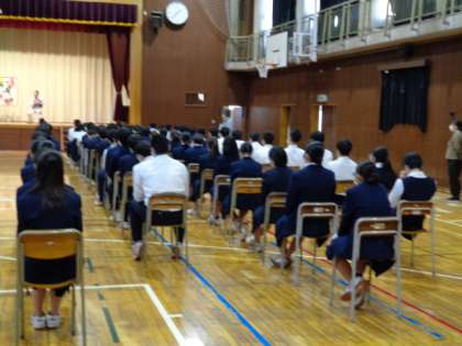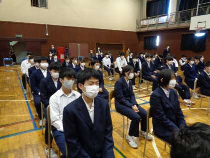 講師は一中卒業生で演出家・振付家の上島雪夫さん。テーマは「人生無駄なことは無い」3年生。