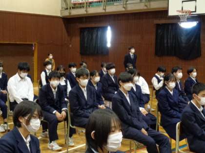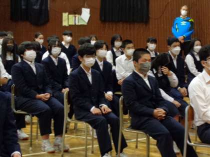 講師は一中卒業生で演出家・振付家の上島雪夫さん。テーマは「人生無駄なことは無い」3年生。