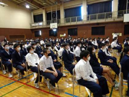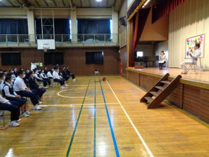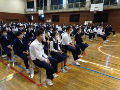 2年生。テーマは「人生無駄なことは無い」。感染症対策で学年ごとに行いました。上島さんありがとうございました。