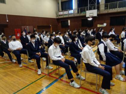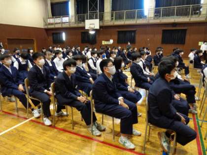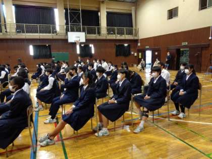 2年生。テーマは「人生無駄なことは無い」。感染症対策で学年ごとに行いました。上島さんありがとうございました。