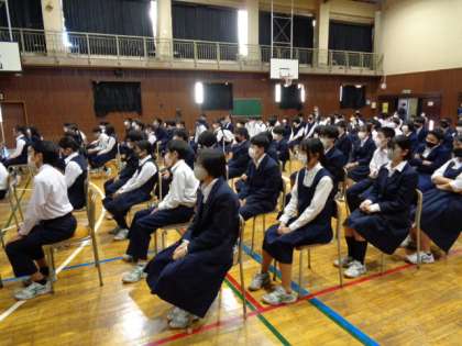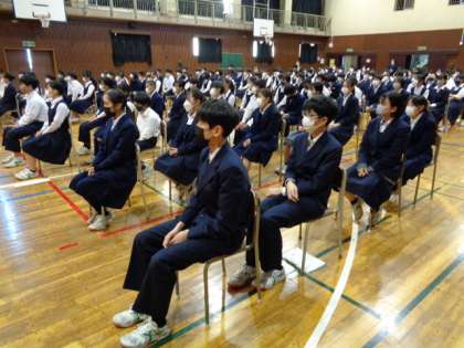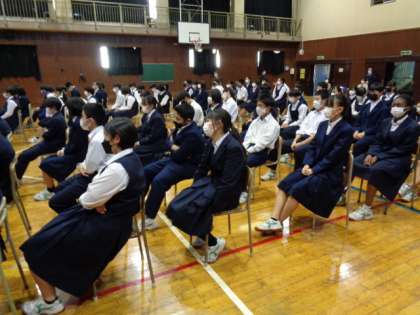 2年生。テーマは「人生無駄なことは無い」。感染症対策で学年ごとに行いました。上島さんありがとうございました。