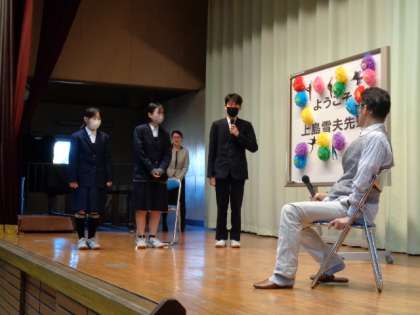 2年生。テーマは「人生無駄なことは無い」。感染症対策で学年ごとに行いました。上島さんありがとうございました。