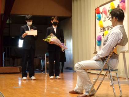 2年生。テーマは「人生無駄なことは無い」。感染症対策で学年ごとに行いました。上島さんありがとうございました。