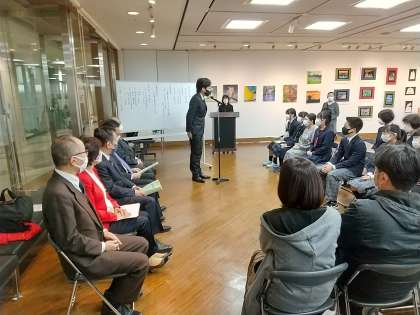 昨日、八王子市中学生絵画展の最終日に表彰式がありました。一中からは3年生の作品が教育長賞と佳作に選ばれました。