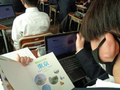 2年1組。東京について調べる。1月24日の校外学習に向けた学習です。