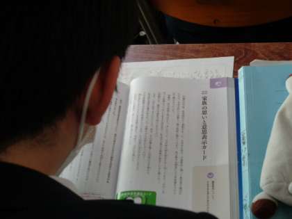 3年3組、道徳。家族の思いと意思表示カード。