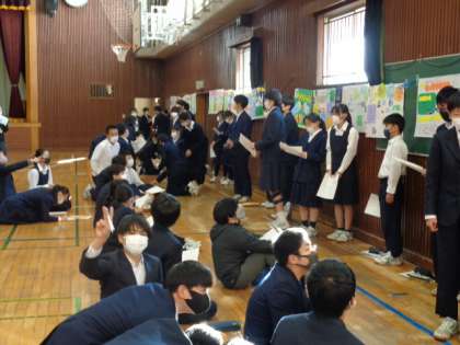 2年生の職場体験報告会の様子です。たくさんのことを学んだようです。