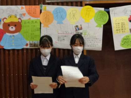 2年生の職場体験報告会の様子です。たくさんのことを学んだようです。