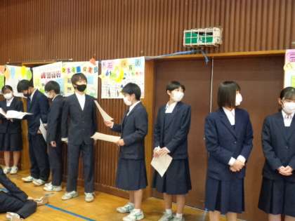 2年生の職場体験報告会の様子です。たくさんのことを学んだようです。
