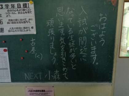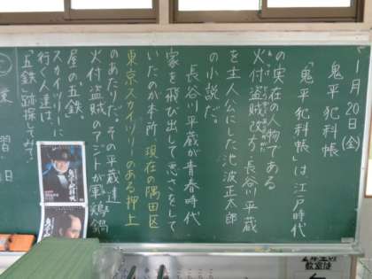 学年掲示板。鬼平犯科帳(2年)入試が間近(3年)