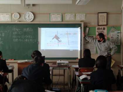 3年3組、道徳。片足のアルペンスキーヤー 三澤 拓。