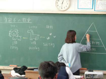 3年4組、理科。生態系の数量。