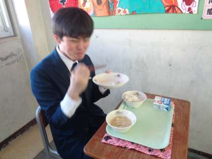 3年1組、給食中。
