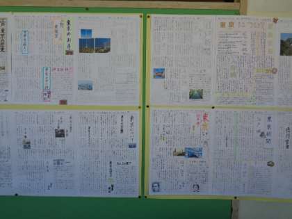 江戸・東京の新聞です。事前学習として個人で作製しました。廊下に掲示されています。