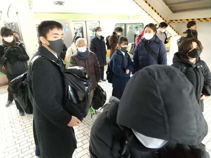 2年校外学習の様子です。7組の生徒も元気に参加しました。八王子駅です。他の生徒はみんな出発しています。