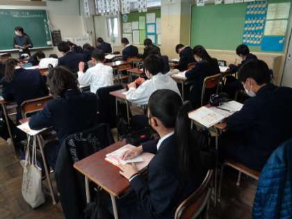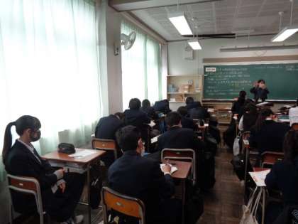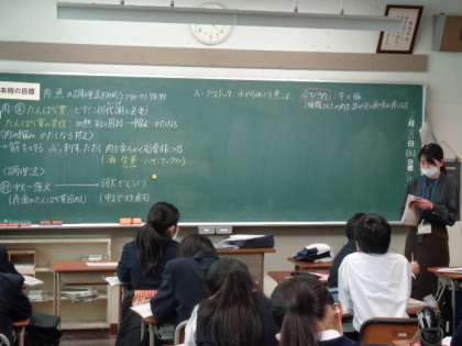 1年4組、家庭科。肉・魚の調理法を知ろう。