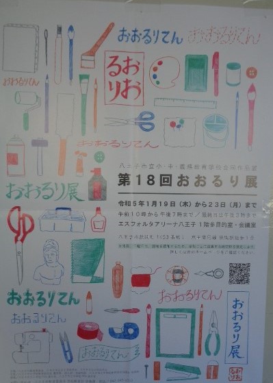 1月のおおるり展(八王子市公立小・中・義務教育学校作品展)に出品された作品の一部が、職員室前に掲示されています。