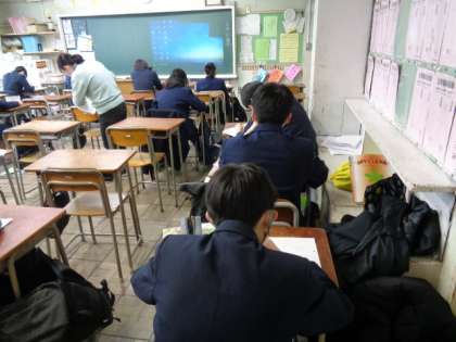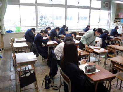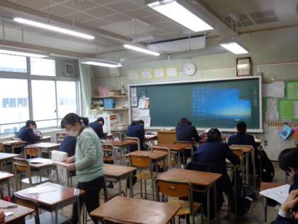 3年2組、英語。今日は私立一般受験のため、登校している3年生が少ないです。みんな頑張れ!