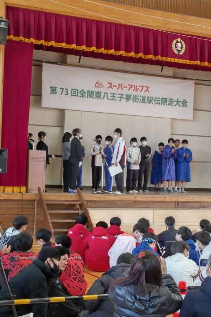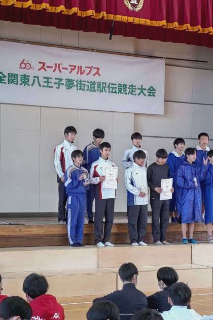 今日行われた第73回全関東八王子夢街道駅伝中学生の部で、第一中学校陸上部が、男子2位、女子3位になりました。おめでとう。