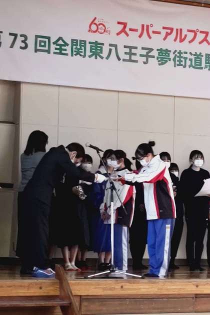 今日行われた第73回全関東八王子夢街道駅伝中学生の部で、第一中学校陸上部が、男子2位、女子3位になりました。おめでとう。