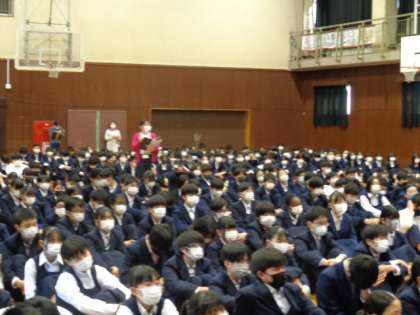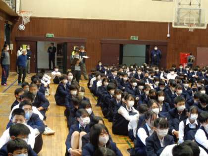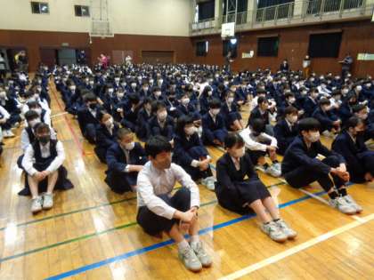 今朝は3月の生徒会朝礼でした。会長や専門委員長が、後期の反省や次年度への抱負を述べました。