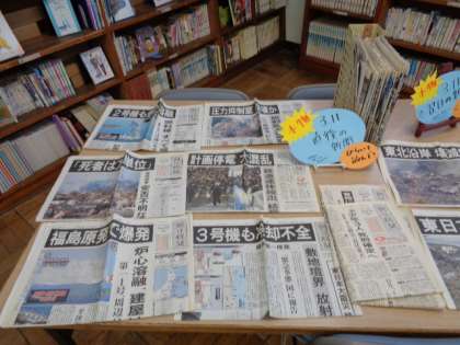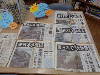 今図書室では東日本大震災を特集しています。発生から12年。ぜひ図書室で当時の新聞や雑誌を開いてください。