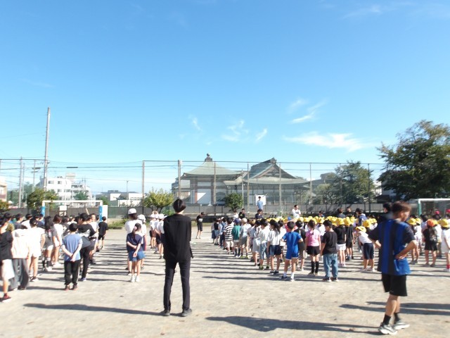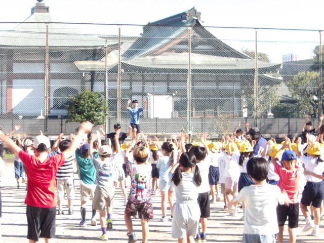 朝は校庭に集まり「二小ストレッチ」を行いました。