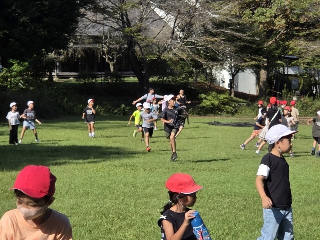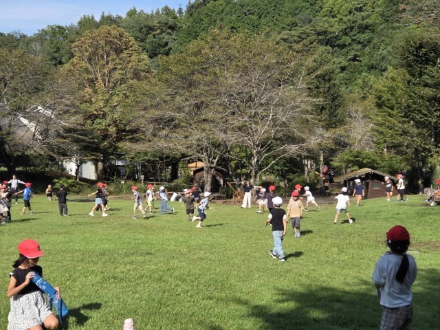 芝生広場で思いっきり遊びました。八王子市には、まだまだ自然がたくさん残っています。