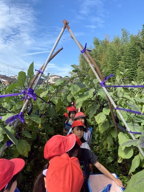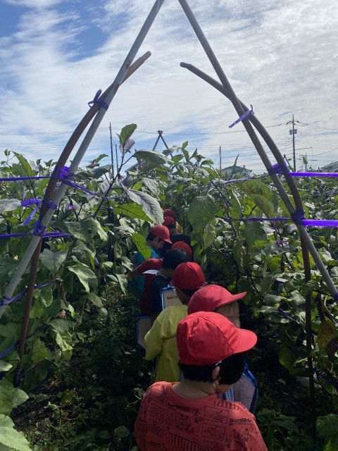 作られた野菜たちを見せていただき ナスのトンネルをくぐりました