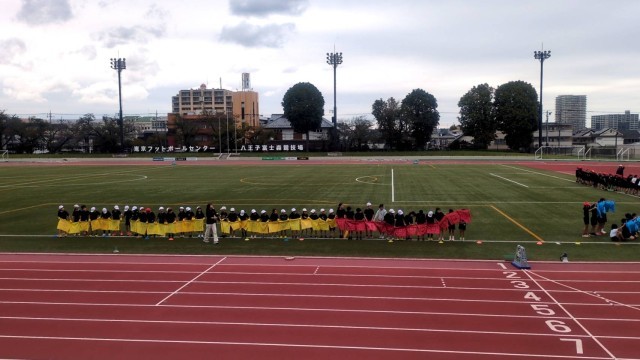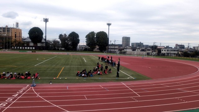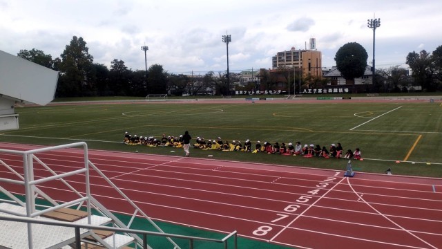 今日は3.4年生が富士森競技場に行き