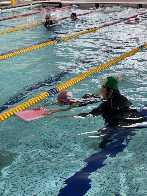 1回目に比べて潜ること浮くことが上手になった子がたくさんいます。ラッコみたいに浮くのも楽しんでできました。